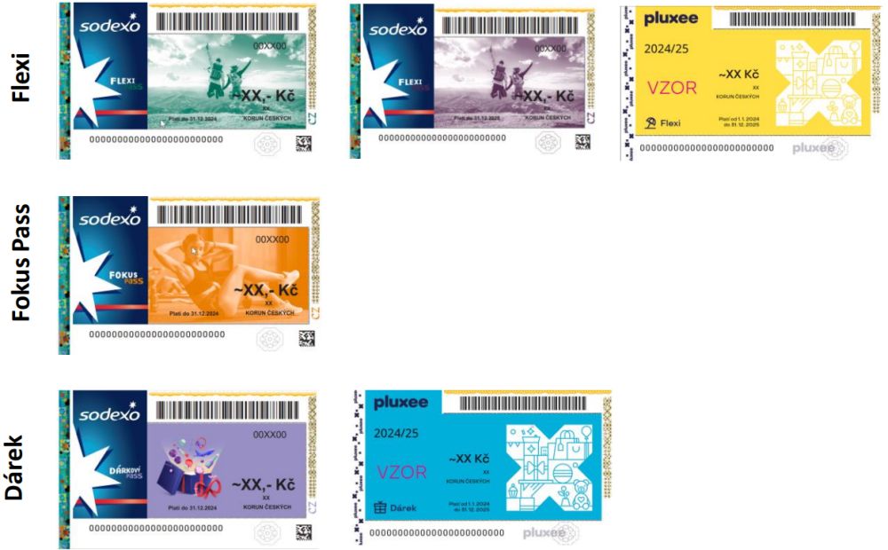 - poukázky: UP, Edenred, Pluxee,