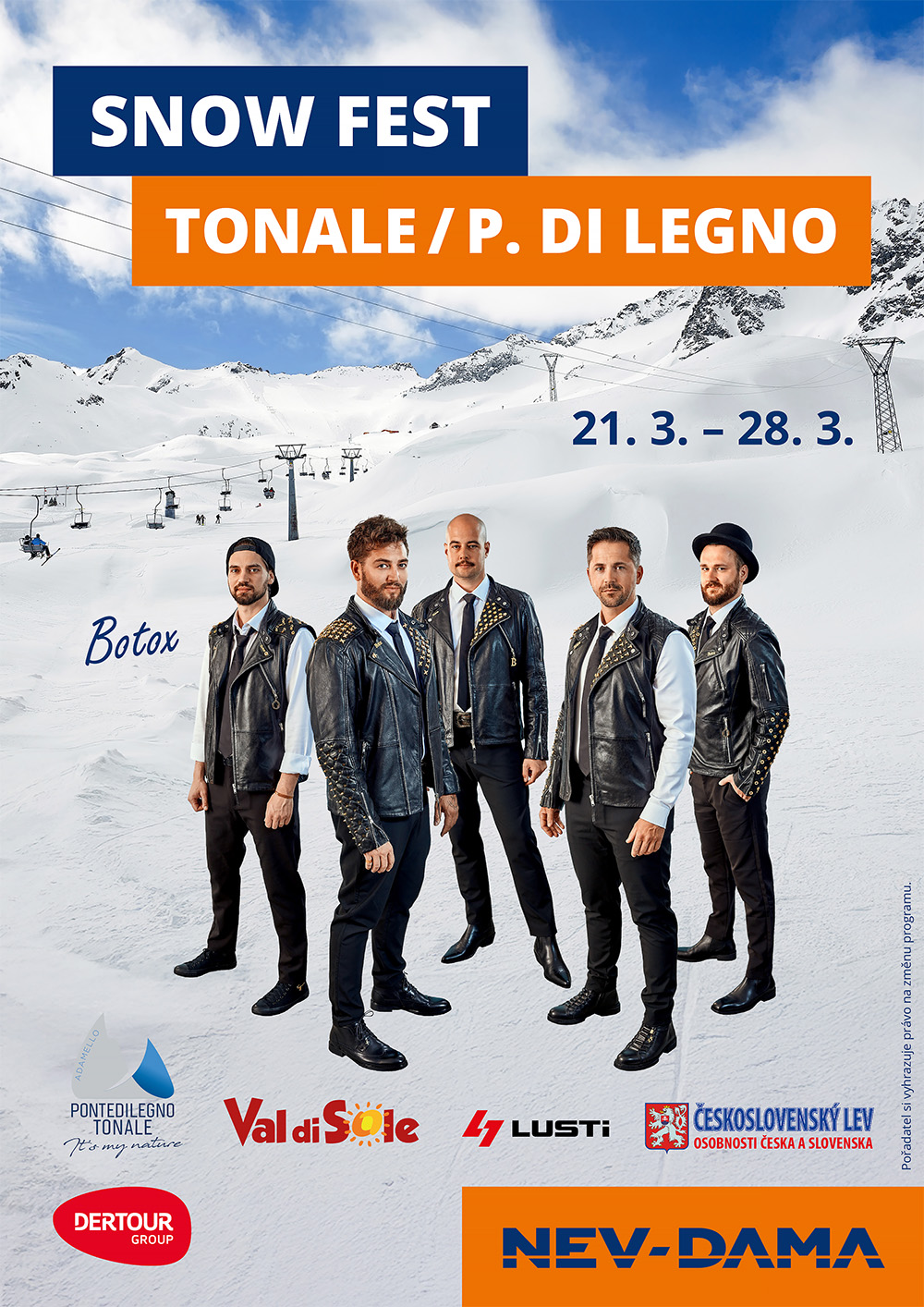 Co si takhle užít jarní lyžování a Ski Fest v italském Tonale? Těšit se můžete na zasněžené svahy, koncert kapely BOTOX, Muzikály Naruby, bohatou tombolu s atraktivními cenami a spoustu dalších nezapomenutelných zážitků!