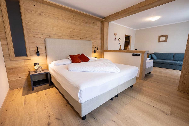 Junior Suite 3/4 - 25 - 35 m² - prostornější pokoj s manželským lůžkem, 3. a 4. lůžka pevná, sociální zařízení